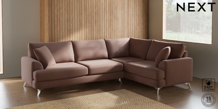 7.2.5 Buy Parker Large Corner Sofa - Right Hand Plush Velvet Easy Clean Mid Natural High Metal - Chrome from the Laura Ashley online shop Click here to use our website with more accessibility support, for example screen readers