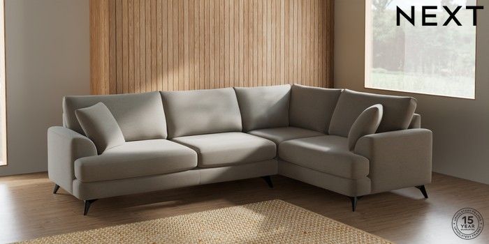 7.2.5 Buy Parker Large Corner Sofa - Right Hand Ripple Chenille Light Natural High Metal - Black from the Laura Ashley online shop Click here to use our website with more accessibility support, for example screen readers