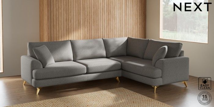 7.2.5 Buy Parker Large Corner Sofa - Right Hand Woven Chenille Easy Clean Light Grey High Metal - Brass from the Laura Ashley online shop Click here to use our website with more accessibility support, for example screen readers