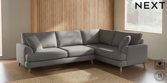 7.2.5 Buy Parker Large Corner Sofa - Right Hand Woven Chenille Easy Clean Light Grey Low Retro Tapered - Light from the Laura Ashley online shop Click here to use our website with more accessibility support, for example screen readers