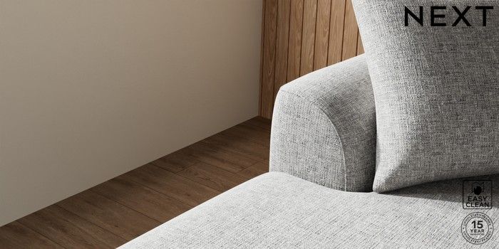 7.2.10 Buy Parker Large Sofa Chaise - Left Hand Chunky Boucle Easy Clean Light Grey Low Retro Tapered - Mid from the Laura Ashley online shop Click here to use our website with more accessibility support, for example screen readers