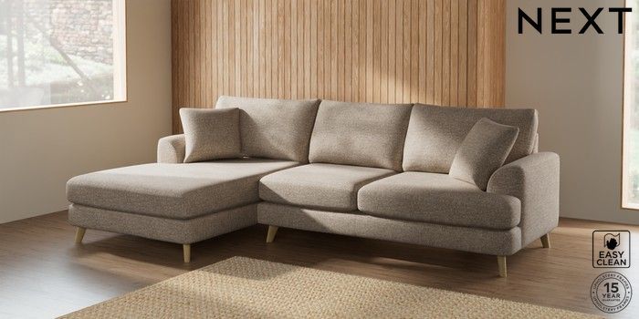 7.2.5 Buy Parker Large Sofa Chaise - Left Hand Chunky Boucle Easy Clean Mid Natural Low Retro Tapered - Light from the Laura Ashley online shop Click here to use our website with more accessibility support, for example screen readers