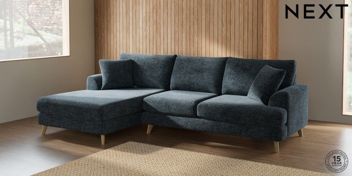 7.2.5 Buy Parker Large Sofa Chaise - Left Hand Chunky Chenille Dark Navy Blue Low Retro Tapered - Light from the Laura Ashley online shop Click here to use our website with more accessibility support, for example screen readers