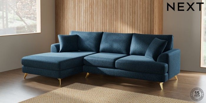 7.2.5 Buy Parker Large Sofa Chaise - Left Hand Cotswold Chenille Dark Blue High Metal - Brass from the Laura Ashley online shop Click here to use our website with more accessibility support, for example screen readers
