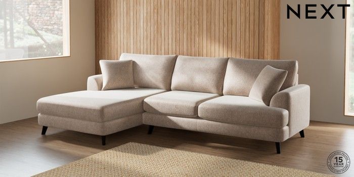 7.2.5 Buy Parker Large Sofa Chaise - Left Hand Cotswold Chenille Light Natural Low Retro Tapered - Dark from the Laura Ashley online shop Click here to use our website with more accessibility support, for example screen readers