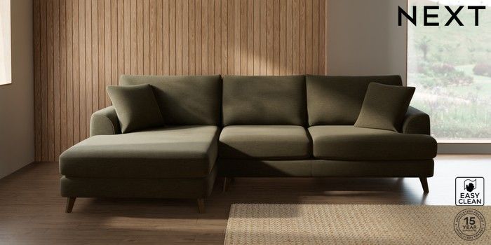 7.2.10 Buy Parker Large Sofa Chaise - Left Hand Fine Chenille Easy Clean Dark Moss Green Low Retro Tapered - Mid from the Laura Ashley online shop Click here to use our website with more accessibility support, for example screen readers