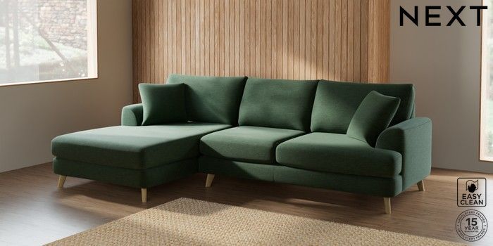 7.2.5 Buy Parker Large Sofa Chaise - Left Hand Fine Chenille Easy Clean Mid Khaki Green Low Retro Tapered - Light from the Laura Ashley online shop Click here to use our website with more accessibility support, for example screen readers