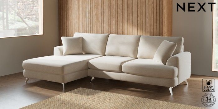 7.2.5 Buy Parker Large Sofa Chaise - Left Hand Fine Chenille Easy Clean Oyster High Metal - Chrome from the Laura Ashley online shop Click here to use our website with more accessibility support, for example screen readers