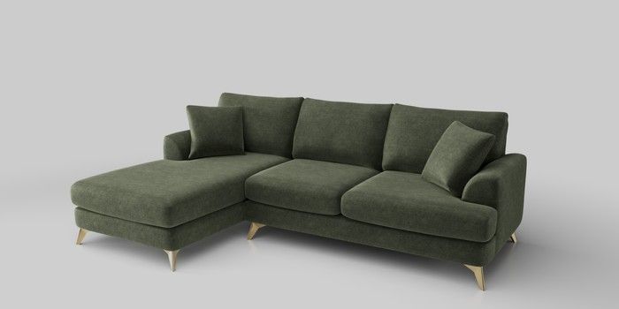 6.12.1 Buy Parker Large Sofa Chaise - Left Hand Luxe Chenille Mid Green High Metal - Brass from the Laura Ashley online shop Click here to use our website with more accessibility support, for example screen readers