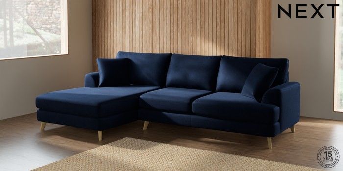 7.0.3 Buy Parker Large Sofa Chaise - Left Hand Luxe Chenille Navy Blue Low Retro Tapered - Light from the Laura Ashley online shop Click here to use our website with more accessibility support, for example screen readers
