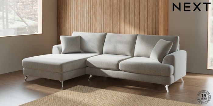 7.2.6 Buy Parker Large Sofa Chaise - Left Hand Multi Weave Light Blue High Metal - Chrome from the Laura Ashley online shop Click here to use our website with more accessibility support, for example screen readers