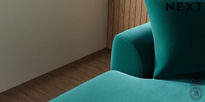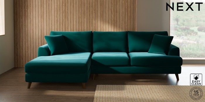 7.2.10 Buy Parker Large Sofa Chaise - Left Hand Plush Velvet Easy Clean Juniper Green Low Retro Tapered - Mid from the Laura Ashley online shop Click here to use our website with more accessibility support, for example screen readers