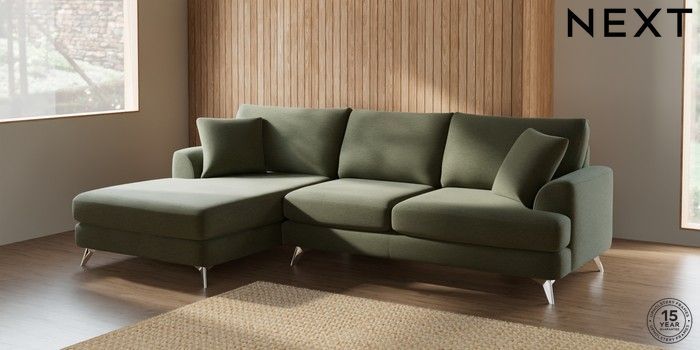 7.2.5 Buy Parker Large Sofa Chaise - Left Hand Ripple Chenille Mid Moss Green High Metal - Chrome from the Laura Ashley online shop Click here to use our website with more accessibility support, for example screen readers