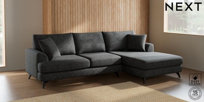 7.2.5 Buy Parker Large Sofa Chaise - Right Hand Boucle Weave Easy Clean Charcoal Grey High Metal - Black from the Laura Ashley online shop Click here to use our website with more accessibility support, for example screen readers
