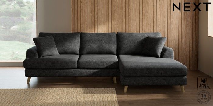 7.2.10 Buy Parker Large Sofa Chaise - Right Hand Boucle Weave Easy Clean Charcoal Grey Low Retro Tapered - Light from the Laura Ashley online shop Click here to use our website with more accessibility support, for example screen readers