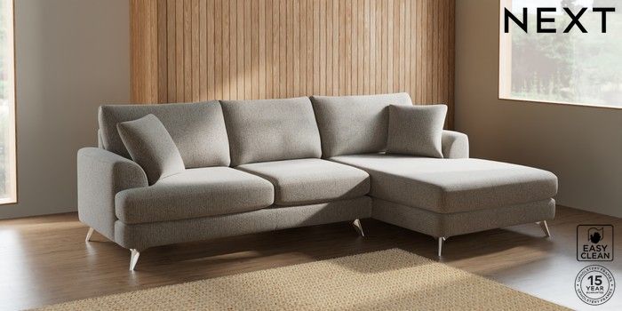 7.2.5 Buy Parker Large Sofa Chaise - Right Hand Chunky Boucle Easy Clean Dove High Metal - Chrome from the Laura Ashley online shop Click here to use our website with more accessibility support, for example screen readers