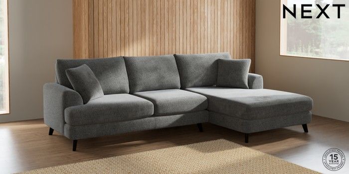 7.2.5 Buy Parker Large Sofa Chaise - Right Hand Chunky Chenille Dark Grey Low Retro Tapered - Dark from the Laura Ashley online shop Click here to use our website with more accessibility support, for example screen readers