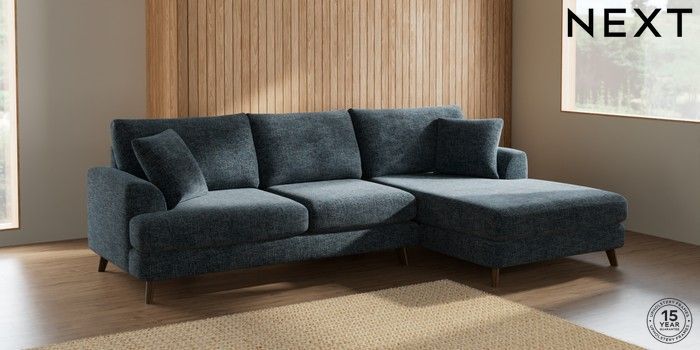 7.2.5 Buy Parker Large Sofa Chaise - Right Hand Chunky Chenille Dark Navy Blue Low Retro Tapered - Mid from the Laura Ashley online shop Click here to use our website with more accessibility support, for example screen readers