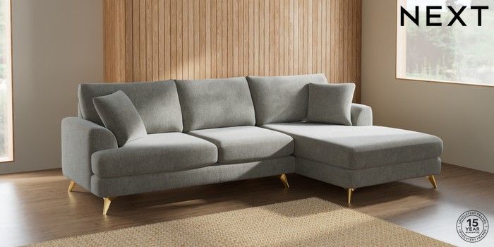 7.2.5 Buy Parker Large Sofa Chaise - Right Hand Chunky Chenille Light Grey High Metal - Brass from the Laura Ashley online shop Click here to use our website with more accessibility support, for example screen readers