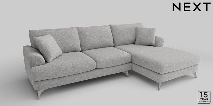 6.12.1 Buy Parker Large Sofa Chaise - Right Hand Chunky Chenille Light Grey High Metal - Chrome from the Laura Ashley online shop Click here to use our website with more accessibility support, for example screen readers