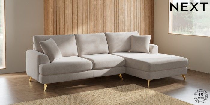 7.2.5 Buy Parker Large Sofa Chaise - Right Hand Chunky Chenille Oyster High Metal - Brass from the Laura Ashley online shop Click here to use our website with more accessibility support, for example screen readers