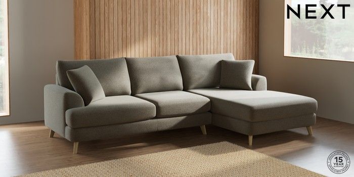 7.2.5 Buy Parker Large Sofa Chaise - Right Hand Chunky Marl Light Olive Green Low Retro Tapered - Light from the Laura Ashley online shop Click here to use our website with more accessibility support, for example screen readers