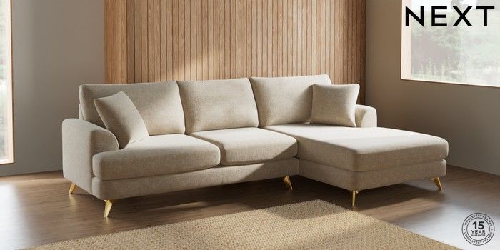 7.2.5 Buy Parker Large Sofa Chaise - Right Hand Chunky Weave Cream High Metal - Brass from the Laura Ashley online shop Click here to use our website with more accessibility support, for example screen readers