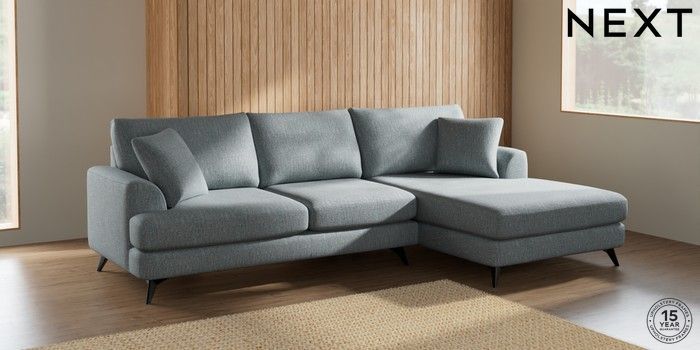 7.2.5 Buy Parker Large Sofa Chaise - Right Hand Chunky Weave Mid Blue High Metal - Black from the Laura Ashley online shop Click here to use our website with more accessibility support, for example screen readers