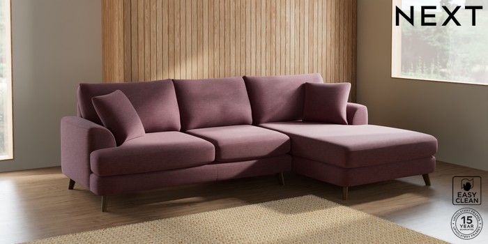 7.2.5 Buy Parker Large Sofa Chaise - Right Hand Fine Chenille Easy Clean Mid Mulberry Purple Low Retro Tapered - Mid from the Laura Ashley online shop Click here to use our website with more accessibility support, for example screen readers