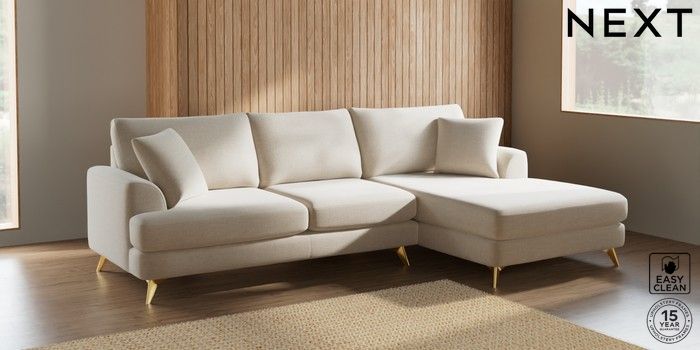 7.2.5 Buy Parker Large Sofa Chaise - Right Hand Fine Chenille Easy Clean Oyster High Metal - Brass from the Laura Ashley online shop Click here to use our website with more accessibility support, for example screen readers