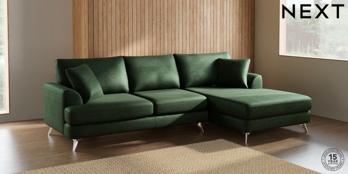 7.2.5 Buy Parker Large Sofa Chaise - Right Hand Luxe Chenille Dark Green High Metal - Chrome from the Laura Ashley online shop Click here to use our website with more accessibility support, for example screen readers