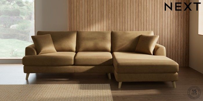7.0.3 Buy Parker Large Sofa Chaise - Right Hand Luxe Chenille Honey Yellow Low Retro Tapered - Light from the Laura Ashley online shop Click here to use our website with more accessibility support, for example screen readers