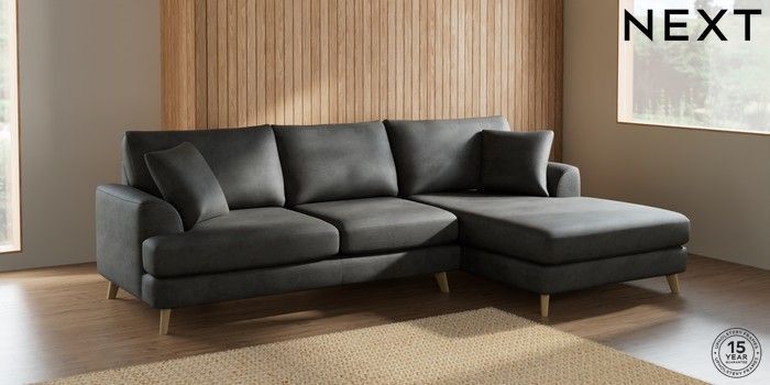 7.2.5 Buy Parker Large Sofa Chaise - Right Hand Monza Faux Leather Easy Clean Dark Grey Low Retro Tapered - Light from the Laura Ashley online shop Click here to use our website with more accessibility support, for example screen readers