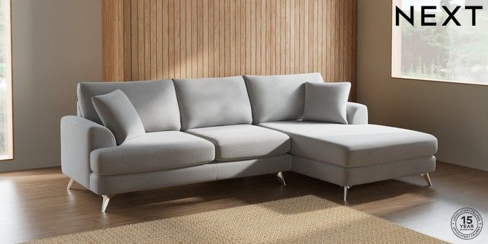 7.2.5 Buy Parker Large Sofa Chaise - Right Hand Natural Mix Light Grey High Metal - Chrome from the Laura Ashley online shop Click here to use our website with more accessibility support, for example screen readers