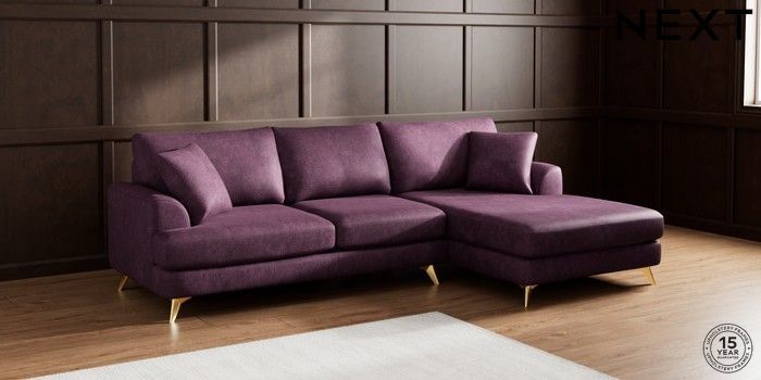 7.2.4 Buy Parker Large Sofa Chaise - Right Hand Plush Chenille Dark Plum Purple High Metal - Brass from the Laura Ashley online shop Click here to use our website with more accessibility support, for example screen readers