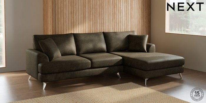 7.2.5 Buy Parker Large Sofa Chaise - Right Hand Plush Chenille Moss Green High Metal - Chrome from the Laura Ashley online shop Click here to use our website with more accessibility support, for example screen readers