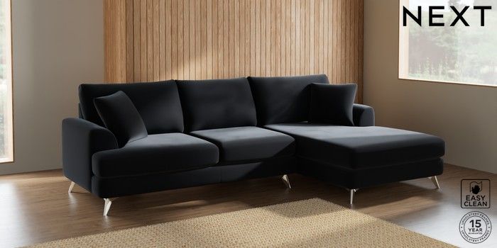 7.2.5 Buy Parker Large Sofa Chaise - Right Hand Plush Velvet Easy Clean Charcoal Grey High Metal - Chrome from the Laura Ashley online shop Click here to use our website with more accessibility support, for example screen readers