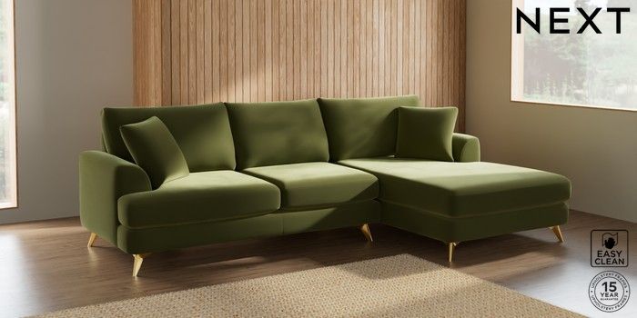 7.2.5 Buy Parker Large Sofa Chaise - Right Hand Plush Velvet Easy Clean Mid Olive Green High Metal - Brass from the Laura Ashley online shop Click here to use our website with more accessibility support, for example screen readers