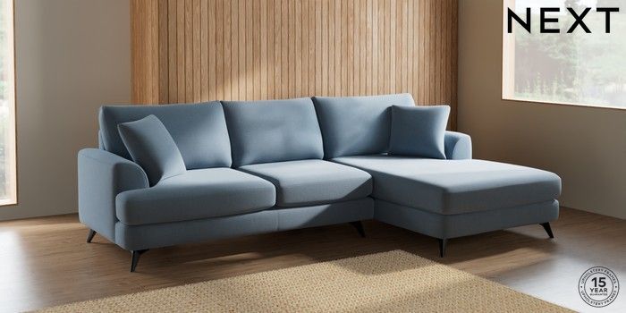 7.2.5 Buy Parker Large Sofa Chaise - Right Hand Relaxed Linen Look Mid Blue High Metal - Black from the Laura Ashley online shop Click here to use our website with more accessibility support, for example screen readers