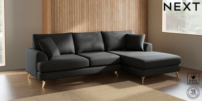 7.2.5 Buy Parker Large Sofa Chaise - Right Hand Tweedy Blend Easy Clean Charcoal Grey High Metal - Brass from the Laura Ashley online shop Click here to use our website with more accessibility support, for example screen readers