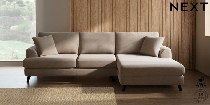 7.2.10 Buy Parker Large Sofa Chaise - Right Hand Tweedy Blend Easy Clean Light Dove Natural Low Retro Tapered - Dark from the Laura Ashley online shop Click here to use our website with more accessibility support, for example screen readers
