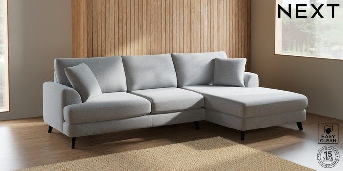 7.2.5 Buy Parker Large Sofa Chaise - Right Hand Tweedy Blend Easy Clean Light Silver Grey Low Retro Tapered - Dark from the Laura Ashley online shop Click here to use our website with more accessibility support, for example screen readers