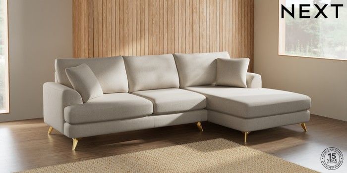 7.2.5 Buy Parker Large Sofa Chaise - Right Hand Tweedy Chenille Oyster High Metal - Brass from the Laura Ashley online shop Click here to use our website with more accessibility support, for example screen readers