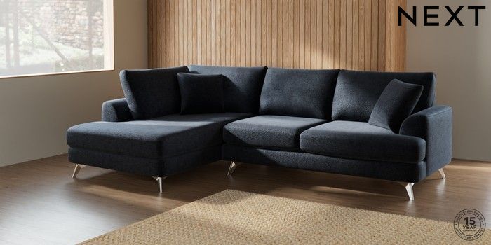 7.2.5 Buy Parker Medium Corner Chaise - Left Hand Boucle Chenille Dark Slate Blue High Metal - Chrome from the Laura Ashley online shop Click here to use our website with more accessibility support, for example screen readers