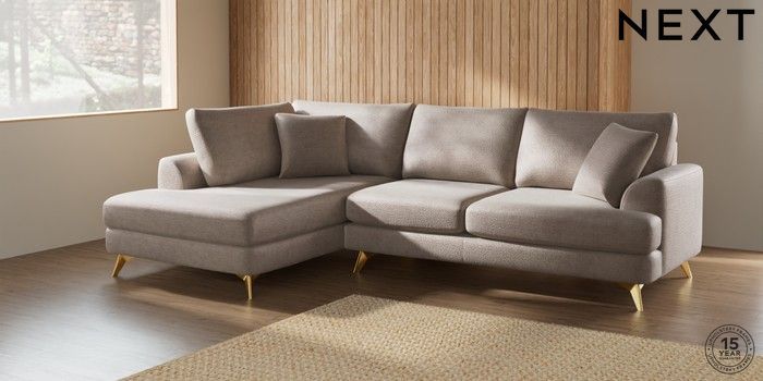 7.2.5 Buy Parker Medium Corner Chaise - Left Hand Boucle Chenille Light Natural High Metal - Brass from the Laura Ashley online shop Click here to use our website with more accessibility support, for example screen readers