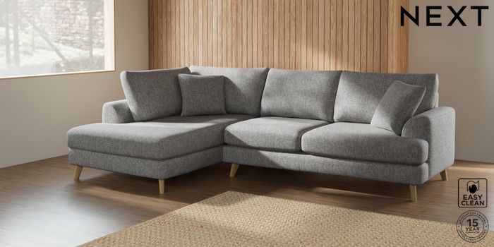 7.2.5 Buy Parker Medium Corner Chaise - Left Hand Chunky Boucle Easy Clean Light Grey Low Retro Tapered - Light from the Laura Ashley online shop Click here to use our website with more accessibility support, for example screen readers