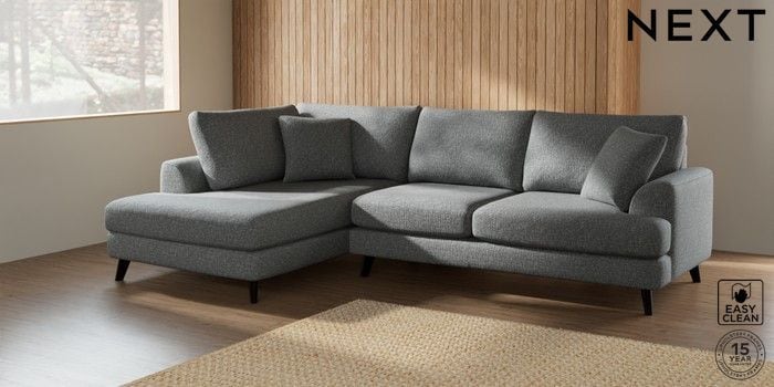 7.2.5 Buy Parker Medium Corner Chaise - Left Hand Chunky Boucle Easy Clean Mid Grey Low Retro Tapered - Dark from the Laura Ashley online shop Click here to use our website with more accessibility support, for example screen readers