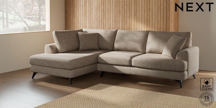 7.2.5 Buy Parker Medium Corner Chaise - Left Hand Chunky Boucle Easy Clean Mid Natural High Metal - Black from the Laura Ashley online shop Click here to use our website with more accessibility support, for example screen readers