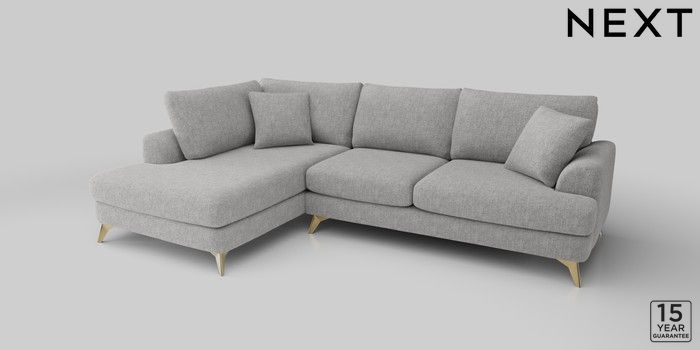 6.11.4 Buy Parker Medium Corner Chaise - Left Hand Chunky Chenille Light Grey High Metal - Brass from the Laura Ashley online shop Click here to use our website with more accessibility support, for example screen readers