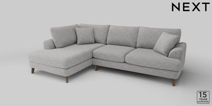 6.11.4 Buy Parker Medium Corner Chaise - Left Hand Chunky Chenille Light Grey Low Retro Tapered - Mid from the Laura Ashley online shop Click here to use our website with more accessibility support, for example screen readers